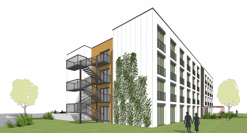 Umístění domova v rámci kvalitního rezidenčního bydlení nabídne seniorům a jejich návštěvám možnost využívat možností velké zahrady, která bude orientovaná na soukromou stranu od bytových domů.